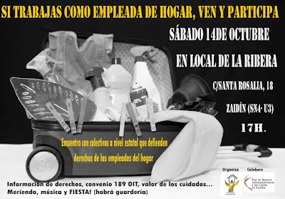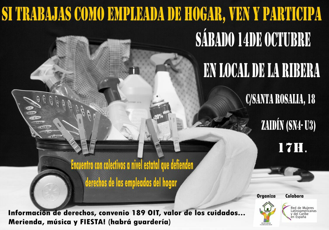 El sábado 14 de Octubre a las 17 horas, compartiremos con la Asociación “Nosotras” de empleadas de hogar de Granada para establecer alianzas y compartir experiencias. Si estas por allí TE ESPERAMOS