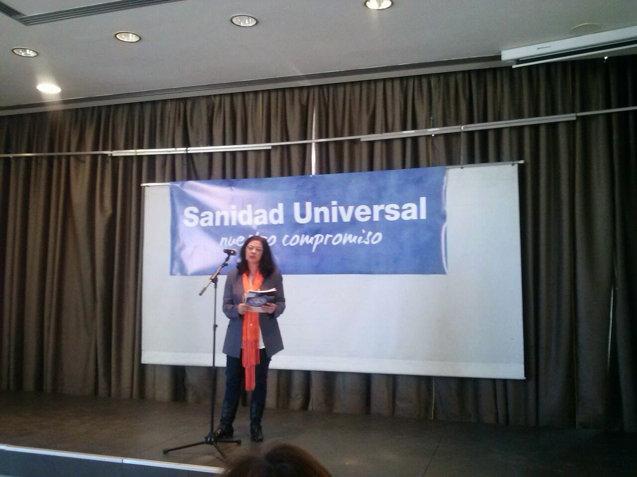 Fotos 2 y 3 representación de la Red, nuestra compañera Mercedes Rodríguez lee nuestras palabras durante el acto.